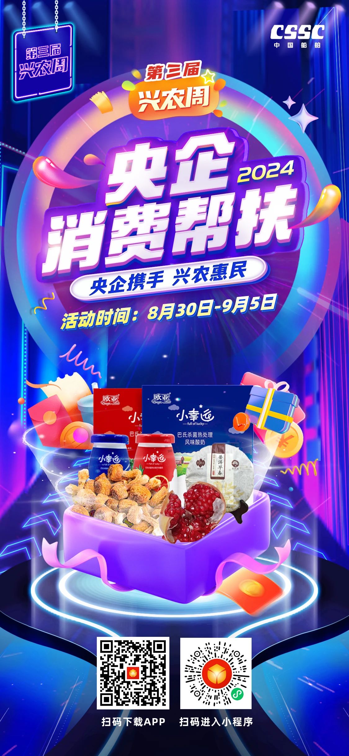 百家央企聚合力,消費幫扶促振興。8月30日~9月5日,第三屆“央企消費幫扶興農周”熱情來襲、盛大啟動!
