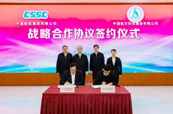12月7日,中國(guó)船舶集團(tuán)有限公司與中國(guó)航天科技集團(tuán)有限公司在京簽署戰(zhàn)略合作協(xié)議。中國(guó)船舶集團(tuán)黨組書記、董事長(zhǎng)雷凡培,黨組副書記、總經(jīng)理?xiàng)罱鸪桑h組成員、副總經(jīng)理錢建平,航天科技集團(tuán)黨組書記、董事長(zhǎng)吳燕生,黨組副書記、總經(jīng)理徐強(qiáng),黨組成員、副總經(jīng)理張忠陽(yáng)出席簽約儀式。楊金成、徐強(qiáng)分別代表雙方在協(xié)議上簽字。