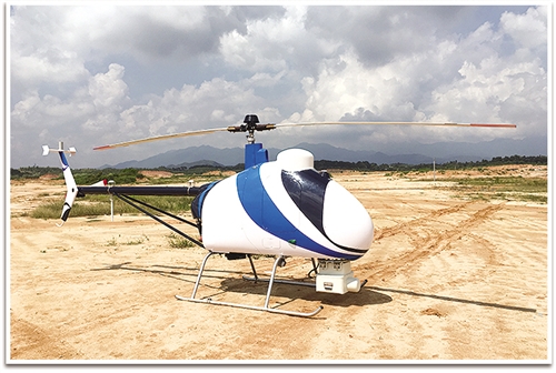 圖為南方電網(wǎng)廣東電力科學(xué)研究院自主研發(fā)的巡線無人直升機(jī)。(張建軍 攝)