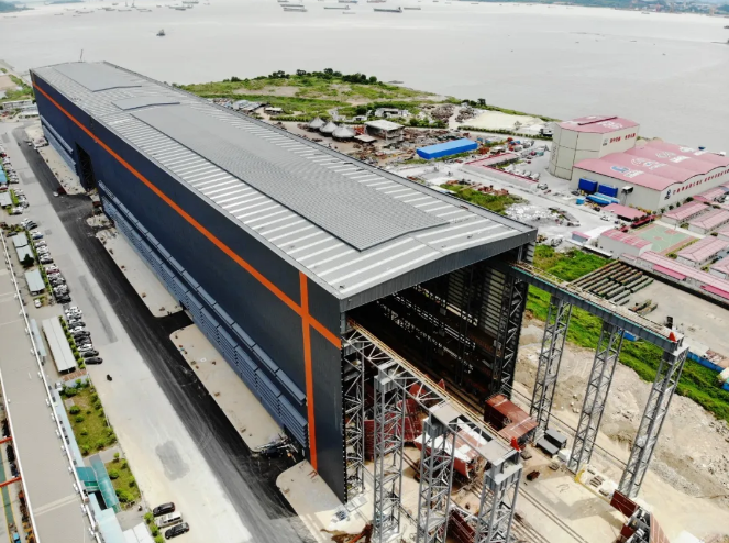 ????相較于露天船臺,室內船臺不僅能改善造船生產環(huán)境、提升產品建造質量,還能解決長期困擾生產的雨季問題。