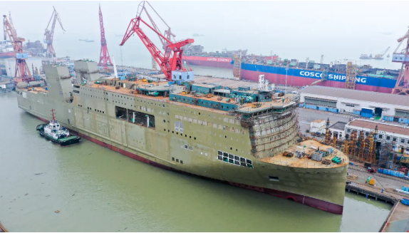 全船共26個總段中23個總段的總組和13個總段的涂裝。這艘船完成了所有上建外板的一度油漆和窗戶涂裝,升降臺、斜坡水密門、斜坡蓋板等均已完成安裝發(fā)電機完成安裝報驗,多個系統(tǒng)完成調試報驗