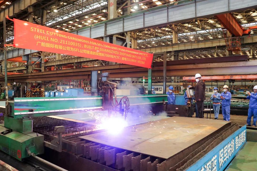 2月18日,廣船國際為挪威SFL公司建造的7000車雙燃料汽車運輸船(PCTC)首制船舉行開工儀式,這是華南地區(qū)建造的首艘雙燃料汽車運輸船,也是廣船國際春節(jié)后開工建造的第一艘船。