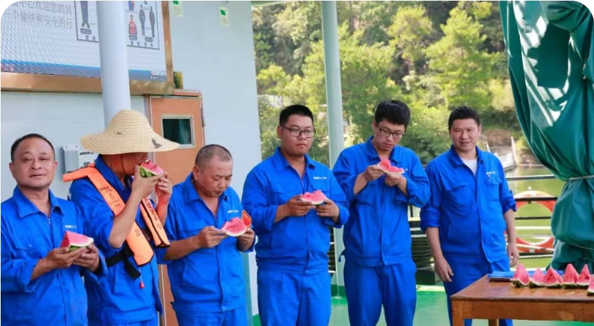 7月杭州的氣溫已經逼近40℃,千島湖上更是熱浪灼人。試驗平臺的“燜爐”和“鐵板”上,不少項目組正在追趕進度,大家都是汗如雨下。七一五所黨委為奮戰在科研生產一線的員工送去防暑物資,傳遞對員工的關懷和鼓勵。