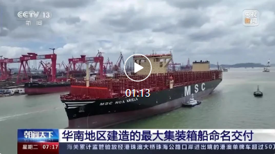 央視新聞 |華南地區建造的最大集裝箱船命名交付