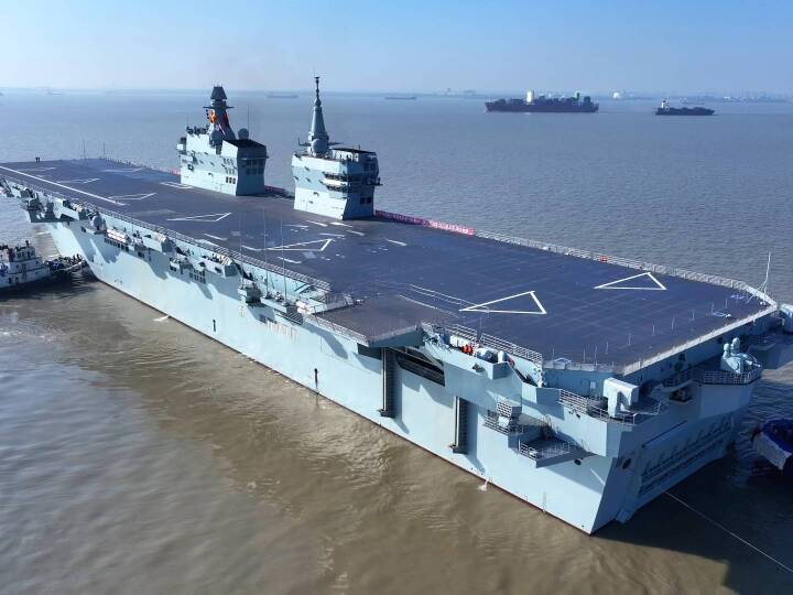 在五艘拖船的牽引下,四川艦離開滬東中華造船廠碼頭駛向相關(guān)海域。四川艦舷號為51,是海軍新一代兩棲攻擊艦,滿載排水量4萬余噸,設(shè)置雙艦島式上層建筑和全縱通飛行甲板,創(chuàng)新應(yīng)用電磁彈射和阻攔技術(shù),可搭載固定翼飛機(jī)、直升機(jī)、兩棲裝備等。